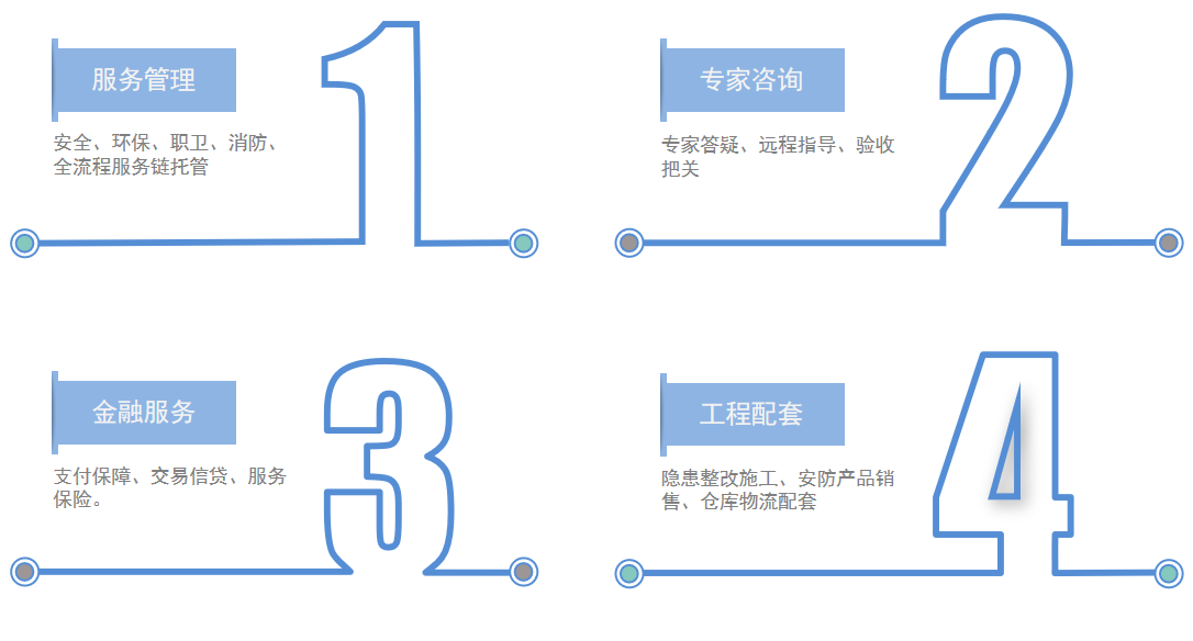 3、第三方银行(合作银行)资金专属服务,建设银行提供低息信用贷款服务,平安保险公司提供技术报告保险服务